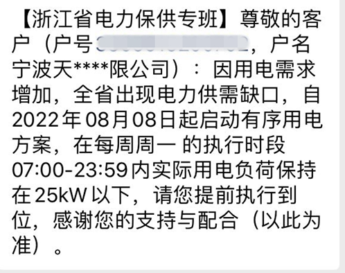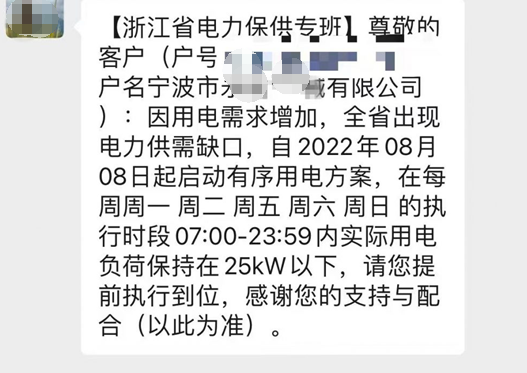 近期,我們收到了通知,由于用電需求增加。浙江省出現電力供缺口,要求我們在每周一7點到24點限電。